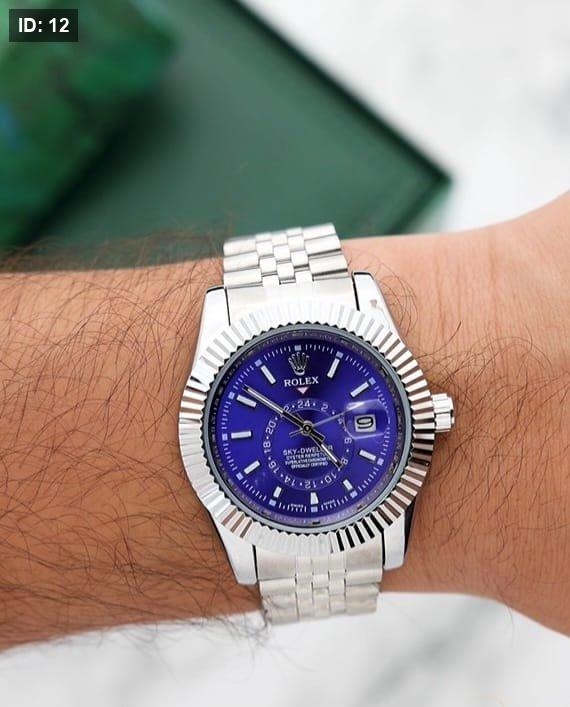 שעון רולקס יוקרתי עם רצועת כסף ולוח כחול אלגנטי, כולל תצוגת תאריך . עיצוב קלאסי שמשלב יוקרה, נוחות ודיוק מושלם – מתאים לכל סגנון ולכל אירוע.