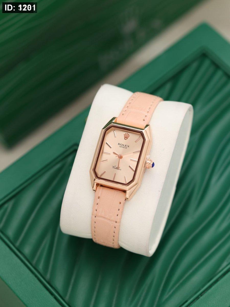 עון רולקס יוקרתי עם רצועת עור בצבע ורוד ולוח בצבע ורוד , עיצוב אלגנטי ומרשים שמשלב קלאסיות עם נגיעה מודרנית. מתאים לכל מראה ולכל אירוע.