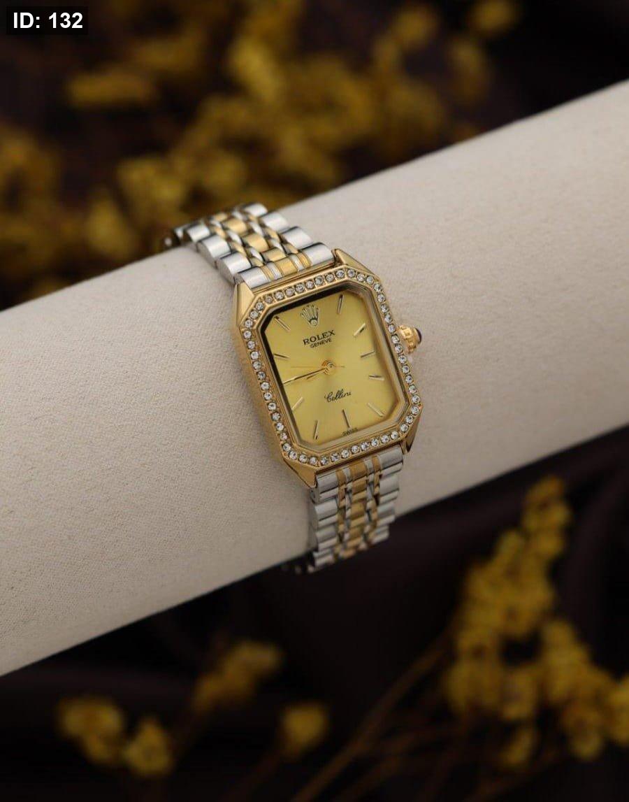 שעון נשי אלגנטי בעיצוב קלאסי של ROLEX, כולו בצבע זהב מהודר – רצועה, גוף ולוח – עם נגיעות זהב עדינות שמוסיפות יוקרה ונשיות.